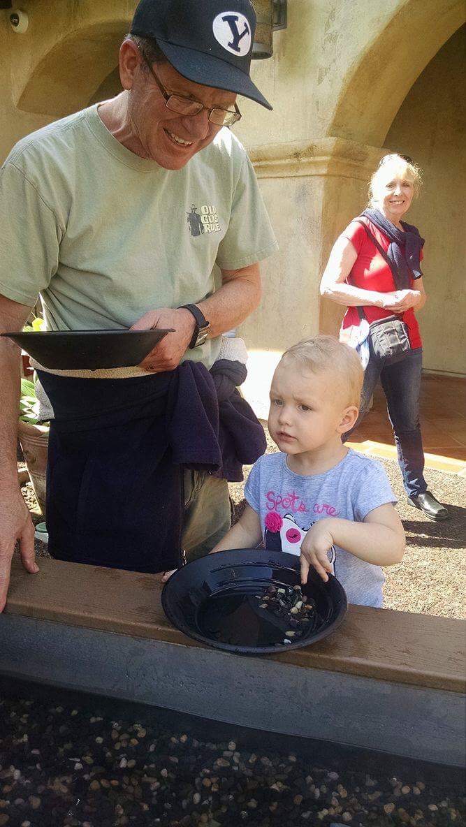 Grace didn't bother even trying to find gold, the fun part for her was throwing rocks in the water.